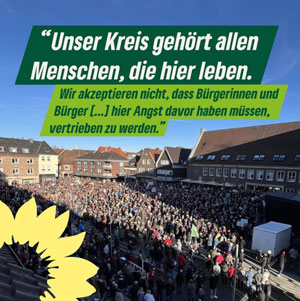 „Das jüngst bekannt gewordene Treffen von AfD-Funktionären mit Mitgliedern der Identitären Bewegung und die dort diskutierte „Remigration“ und Vertreibung von Millionen Menschen aus Deutschland hat uns alle schockiert. Wir nehmen es nicht hin, dass rechtsextreme Kräfte eine Atmosphäre der Verunsicherung, der Angst und des Hasses in unserem Land und in unserem Kreis schüren.