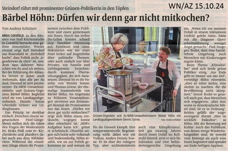Koch Steindorf mit Grünen-Politikerin (Bärbel Höhn) und Dennis Sonne (MdL) bei Stall in Coesfeld